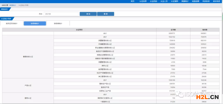 管理體系認證通過認證的證書數(shù)量為1522152張, 通過認證的組織數(shù)為728978家。