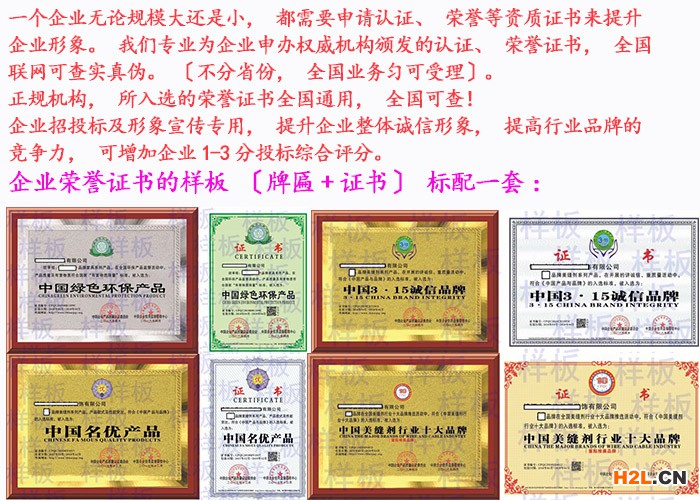 更多榮譽證書項目申辦如下: 生產(chǎn)型企業(yè)榮譽:(部分適用于服務(wù)類行業(yè)) 《中國名優(yōu)產(chǎn)品》 《中國綠色環(huán)保產(chǎn)品》 《節(jié)能綠色環(huán)保推廣產(chǎn)品》 《中國XX行業(yè)*大品牌》 《全國消費者放心滿意品牌》 《國家權(quán)威檢測質(zhì)量合格產(chǎn)品》 《中國3.15誠信品牌/企業(yè)》 《質(zhì)量信譽雙保障示范單位》 《中國*名品牌》 《中國著*品牌/企業(yè)》 《國際*名品牌》 《中國工程建設(shè)推薦產(chǎn)品》 《質(zhì)量 .服務(wù).誠信AAA企業(yè)》 《中國XX行業(yè)暢*品牌》 《中國XX行業(yè)*佳名優(yōu)品牌》 《質(zhì)量信得過產(chǎn)品》 《中國*名商標(biāo)》 《中國*強優(yōu)秀企業(yè)》 《中國*名品牌》 《XX省著*品牌》 《XX省優(yōu)秀產(chǎn)品》 《國家合格評定質(zhì)量信得過產(chǎn)品》 《中國自主創(chuàng)新產(chǎn)品》 《中國消費者可信賴品牌》 《全國產(chǎn)品質(zhì)量過硬·信譽保證放心品牌》 《中國XX30強企業(yè)》 《全國質(zhì)量信譽保證·*銷品牌》 《中國XX行業(yè)領(lǐng)*品牌》 《中國XX行業(yè)特色加盟品牌》 《國家質(zhì)量監(jiān)督合格紅榜產(chǎn)品》 《質(zhì)量·放心國家標(biāo)準(zhǔn)合格產(chǎn)品》 《全國產(chǎn)品質(zhì)量公證*佳品牌》 《中國優(yōu)秀綠色環(huán)保產(chǎn)品 》等等企業(yè)榮譽證書; 以上眾多企業(yè)榮譽項目,部份需要根據(jù)企業(yè)提供的資料條件而憑選。代辦理申請申報企業(yè)榮譽證書、綠色環(huán)保認(rèn)證,中國綠色環(huán)保產(chǎn)品,投標(biāo)證書。
