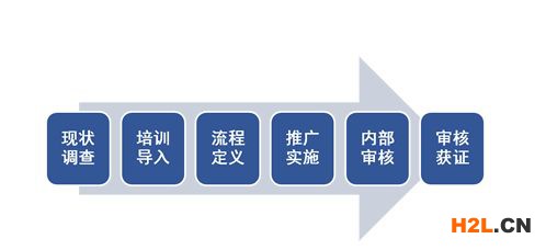ISO20000實施流程:(1)差距分析;(2)體系培訓(xùn);(3)分配職責(zé);(4)體系運行;(5)內(nèi)審和管理評審。