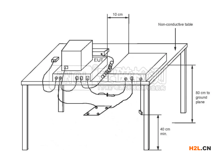在測試產(chǎn)品之前,我們需要按照標準的法規(guī)要求,進行產(chǎn)品Set Up布置。測試在半電波暗室中進行,EUT隨轉(zhuǎn)臺360度轉(zhuǎn)動,天線在1-4m高度上下升降,尋找輻射最大值。結(jié)果用QP值表示。垂直、水平兩種天線極化方向都測。