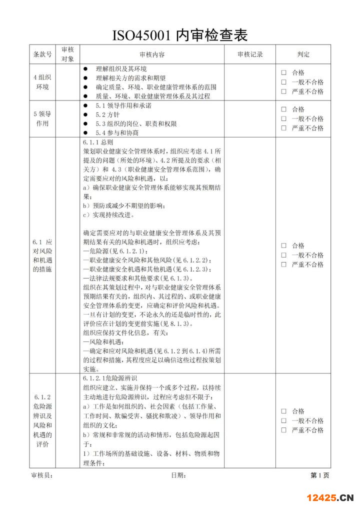 這些體系的內(nèi)審檢查表,你肯定用得到!