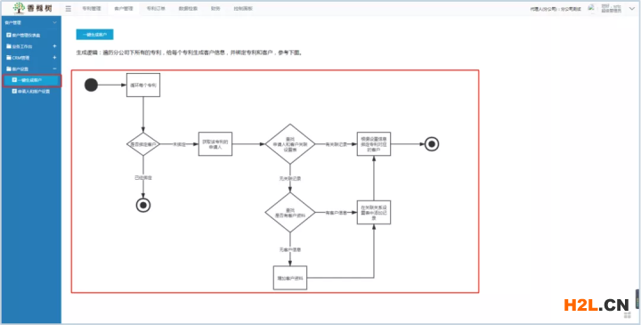 點擊一鍵生成客戶時,系統(tǒng)會遍歷系統(tǒng)專利,將有客戶信息的按照申請人和客設置將客戶綁定到對應的專利上,無客戶信息的,先生成客戶信息再按照申請人和客設置將客戶綁定到對應的專利上。