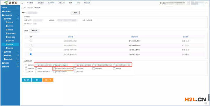 新增專利界面新增一個監(jiān)控官費復選框,對新申請的專利進行官費監(jiān)控。