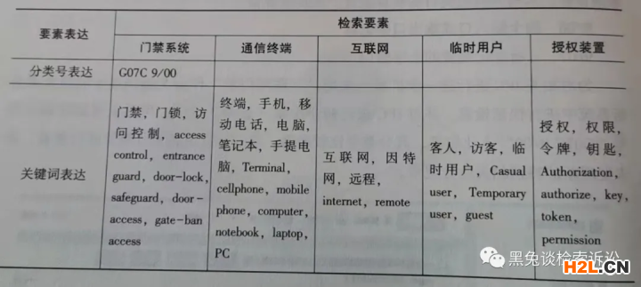 本專利在具有相對準(zhǔn)確的分類號的情形下,可將關(guān)鍵詞的選擇先集中在主要技術(shù)特征“門禁系統(tǒng)”、“通信終端”、“臨時用戶的授權(quán)裝置”,并進(jìn)一步聚焦于“門禁”、“臨時用戶”、“授權(quán)”等體現(xiàn)創(chuàng)新點(diǎn)的技術(shù)特征上。