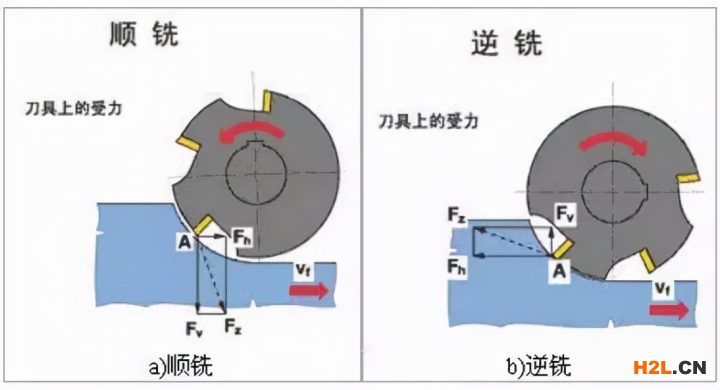毛坯材料硬度高:逆銑較好;毛坯材料硬度低:順銑較好。