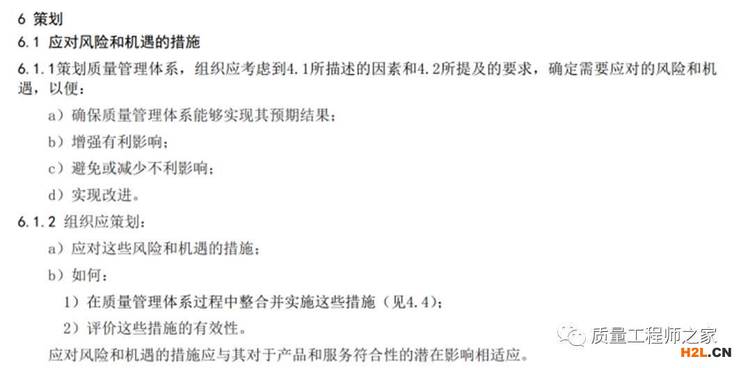 第六章-- 要求組織識別與QMS績效相關的風險及機遇,并制定適宜的應對措施。