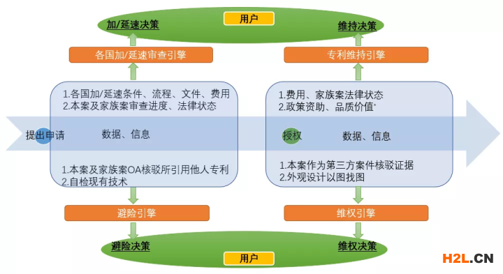 我們需要以下工具或系統(tǒng)來實現(xiàn)科學(xué)管理,(1)案件管理系統(tǒng),提供各國案件進程的各種數(shù)據(jù),如期限、費用、狀態(tài)、相關(guān)產(chǎn)品信息、技術(shù)信息等(2)全球?qū)@麛?shù)據(jù)庫及檢索系統(tǒng),提供專利大數(shù)據(jù)(3)科學(xué)管理引擎,提供智能決策,科學(xué)管理引擎包括加/延速審查引擎、避險引擎、專利維持引擎、及維權(quán)引擎等??茖W(xué)管理引擎整合各種數(shù)據(jù)與信息,并根據(jù)規(guī)則生產(chǎn)各種決策建議供決策者參考使用。科學(xué)管理引擎依據(jù)管理需要,可以從專利申請確權(quán)、維持、避險、維權(quán)等維度建立??茖W(xué)管理引擎處于核心地位,其它系統(tǒng)或工具與其實現(xiàn)底層連接,提供數(shù)據(jù)的支持。