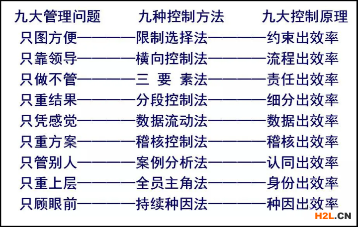 •問題2:只靠領(lǐng)導(dǎo)做管理是多數(shù)企業(yè)的管理現(xiàn)狀。但領(lǐng)導(dǎo)做管理往往粗而不細(xì)。如何調(diào)動大家積極性,減少對領(lǐng)導(dǎo)的依賴,讓人們互相管理。少靠行政命令,多靠流程推動。這是橫向控制法要解決的核心問題。