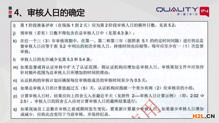 下面這張PPT主要介紹的是監(jiān)督審核的人天是怎么來確定的?