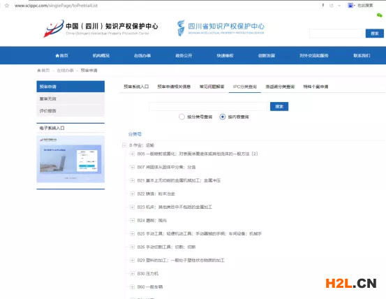 各地知識(shí)產(chǎn)權(quán)保護(hù)中心支持的技術(shù)領(lǐng)域不同,通??梢酝ㄟ^(guò)IPC分類號(hào)和洛迦諾分類號(hào)進(jìn)行查詢,以中國(guó)(四川)知識(shí)產(chǎn)權(quán)保護(hù)中心為例,可以登錄中國(guó)(四川)知識(shí)產(chǎn)權(quán)保護(hù)中心官網(wǎng)進(jìn)行查詢: