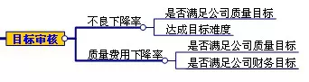制定好了質(zhì)量目標(biāo),接下來(lái)還需要對(duì)質(zhì)量目標(biāo)進(jìn)行審核。前面我們結(jié)合了江城子審核制造部質(zhì)量目標(biāo)的案例講述了質(zhì)量目標(biāo)的審核,主要審核的內(nèi)容有兩個(gè)方面,一個(gè)是不良率下降目標(biāo)的審核,另一個(gè)是質(zhì)量費(fèi)用下降率目標(biāo)的審核。