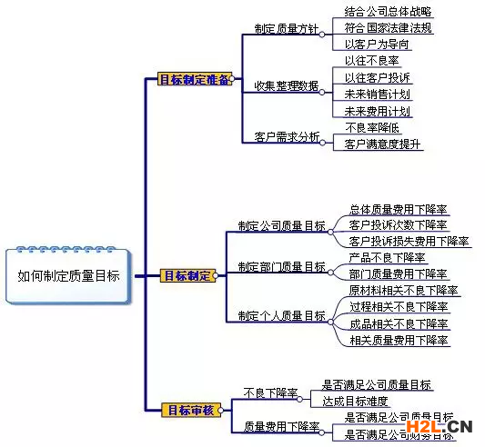 最后,我們把這幾個(gè)步驟串起來(lái),就形成了“制定質(zhì)量目標(biāo)”的完整流程。
