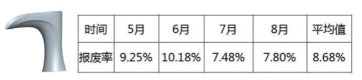 4.類比類似的產(chǎn)品F042BR-07-00水嘴座,平均報(bào)廢率約為8.68%。