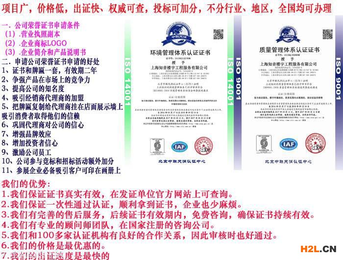 我公司為江浙滬上千家企業(yè)辦理過ISO證書,擁有經(jīng)驗豐富的輔導(dǎo)老師,發(fā)證模板也有2種供客戶自己選擇,一種是國內(nèi)審核培訓(xùn)輔導(dǎo),一種是國外發(fā)證,無審核,無輔 申請企業(yè)可以根據(jù)自己公司的實際情況進行選擇,
