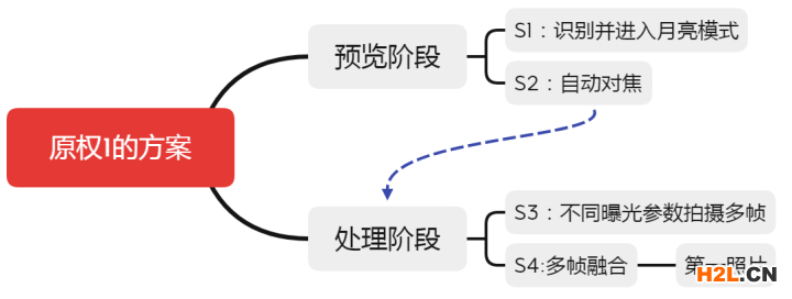 簡(jiǎn)而言之,該權(quán)利要求1包括拍攝月亮的四個(gè)步驟,請(qǐng)參考圖1.
