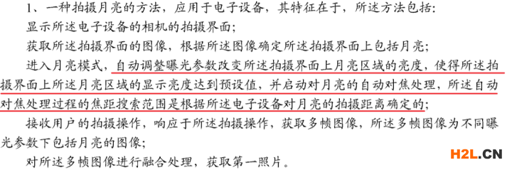 發(fā)明專利申請(qǐng)?zhí)?01910134047.X,專利名稱“一種拍攝月亮的方法和電子設(shè)備”,在權(quán)利要求1中記載了如下方案: