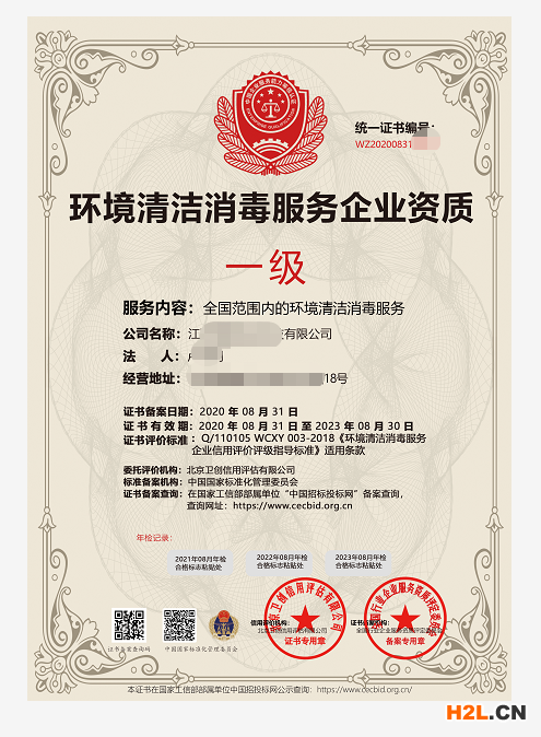 消毒清潔養(yǎng)護(hù)服務(wù)資質(zhì)證書