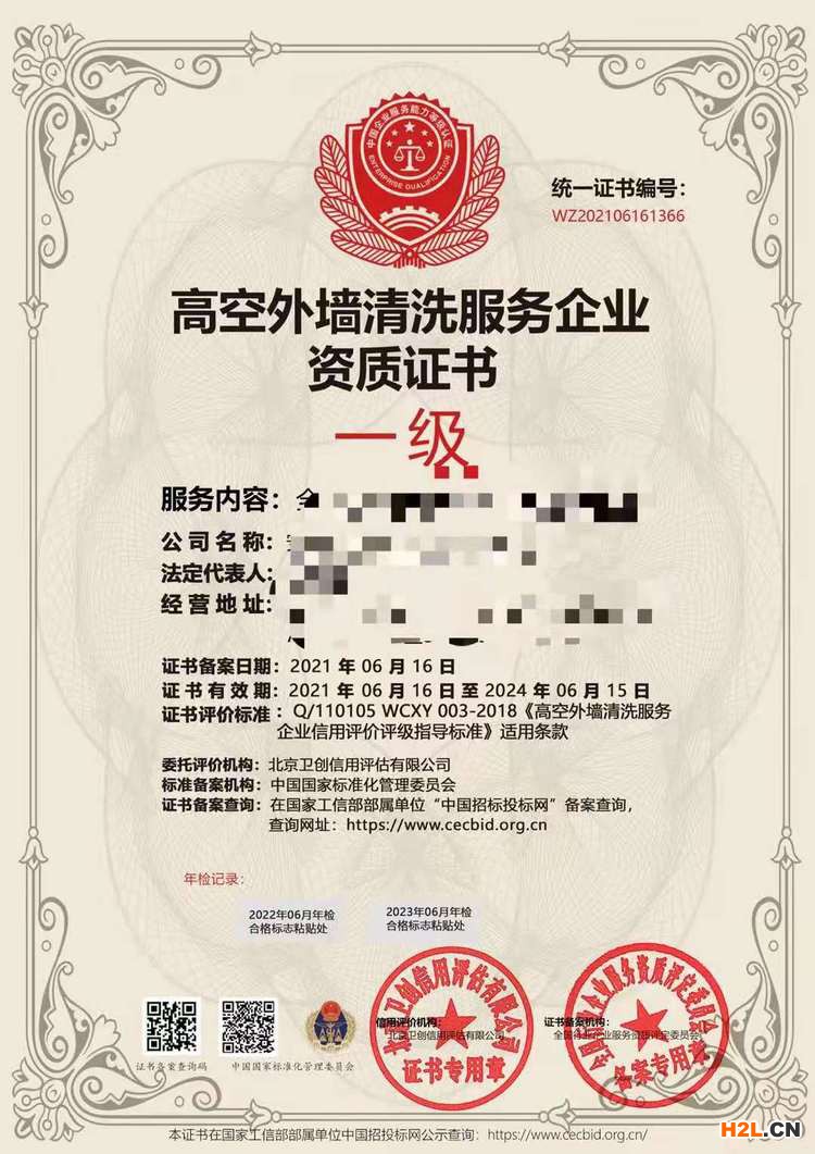 19. 高空外墻清洗服務(wù)企業(yè)資質(zhì)證書