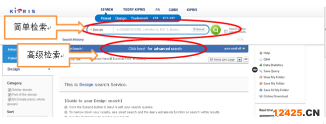 在KIPRIS主頁(yè)上提供專利數(shù)據(jù)庫(kù)(Patent)、外觀設(shè)計(jì)數(shù)據(jù)庫(kù)(Design)、商標(biāo)數(shù)據(jù)庫(kù)(Trademark)、英文文摘(KPA)和 (K2E-PAT)數(shù)據(jù)庫(kù)檢索入口。