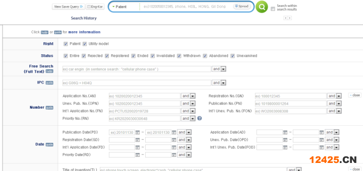 網(wǎng)址:http://www.kipris.or.kr/enghome/main.jsp