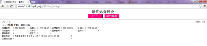 最終處分照會(huì)也可以對(duì)日本專利、實(shí)用新型、外觀以及商標(biāo)進(jìn)行檢索。號(hào)碼類型有:申請(qǐng)?zhí)?出愿)、公開號(hào)、公表號(hào)、審判號(hào)、公告號(hào)、登錄號(hào)。