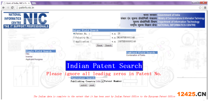 印度國(guó)家信息中心專利檢索網(wǎng)站就是該中心的世界專利信息服務(wù)網(wǎng)站。