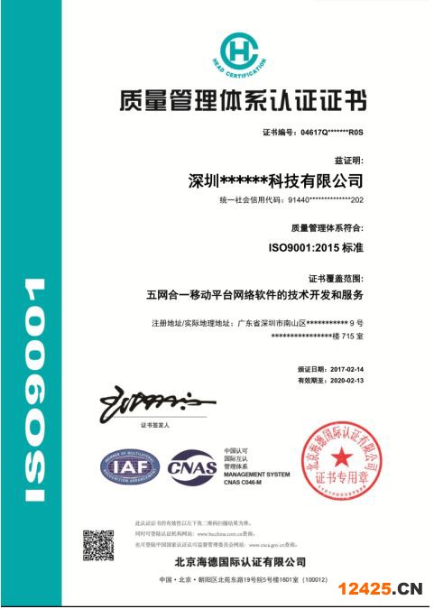 (ISO9001質(zhì)量管理體系認(rèn)證證書)