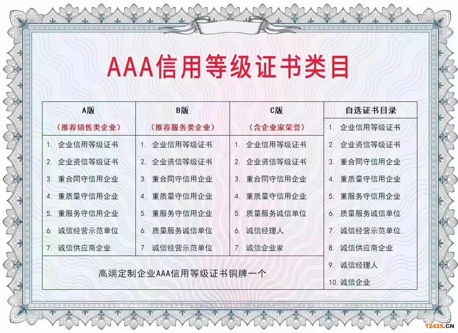 招投標(biāo)AAA信用評(píng)級(jí)、AAA企業(yè)信用評(píng)級(jí)、AAA級(jí)重合同守信用企業(yè)、第三方權(quán)威機(jī)構(gòu)AAA、協(xié)會(huì)AAA級(jí)信用企業(yè)等。