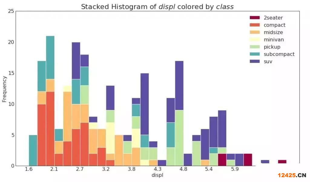類型變量的直方圖顯示該變量的頻率分布。 通過對條形圖進行著色,可以將分布與表示顏色的另一個類型變量相關聯(lián)。