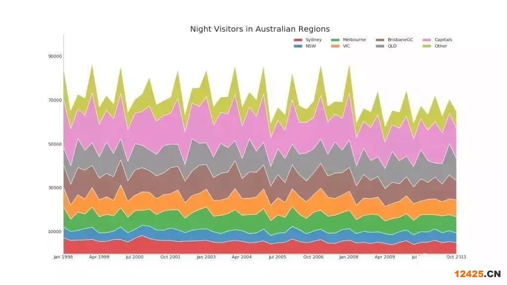 堆積面積圖可以直觀地顯示多個時間序列的貢獻程度,因此很容易相互比較。