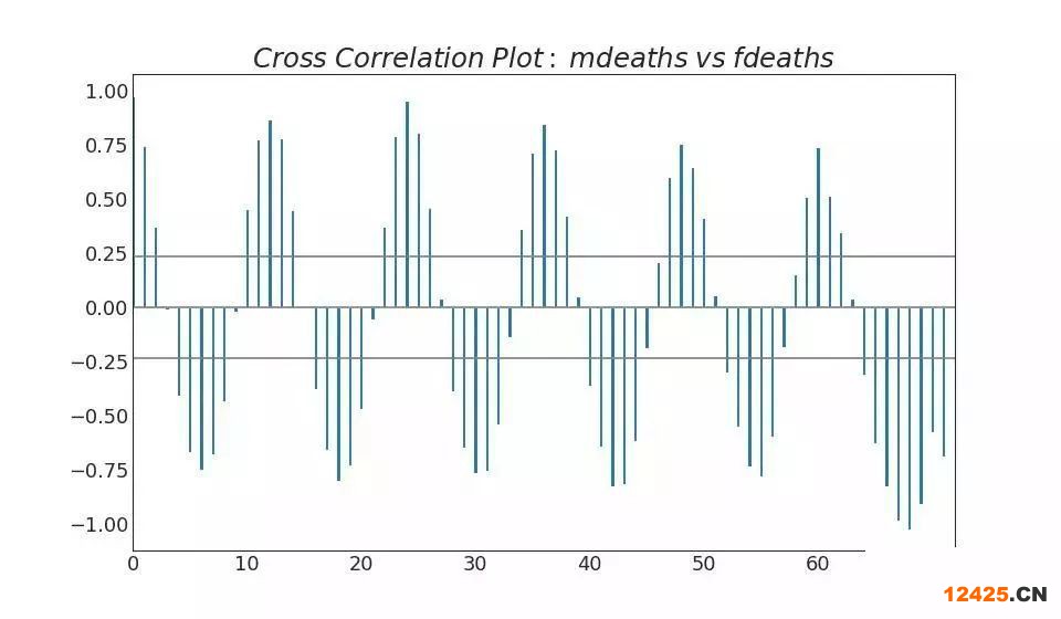 交叉相關圖顯示了兩個時間序列相互之間的滯后。