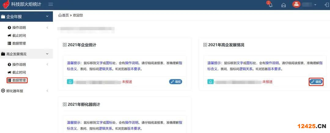1、科技部政務(wù)服務(wù)平臺(https://fuwu.most.gov.cn)-用戶登錄-法人登錄-火炬中心業(yè)務(wù)辦理平臺-科技部火炬統(tǒng)計調(diào)查-高企發(fā)展情況-數(shù)據(jù)管理-填報。