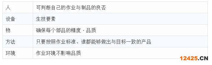 豐田的TQM體系落實(shí)到現(xiàn)場,就是實(shí)現(xiàn)‘自工程完結(jié)’,即‘質(zhì)量在工序內(nèi)保證’。其手段不是依靠加強(qiáng)檢驗,而是識別影響本工序質(zhì)量的影響要素,在各個職能部門協(xié)同努力下,讓本工序不管誰來操作,只要符合‘作業(yè)要領(lǐng)’,就必然做出合格的產(chǎn)品。