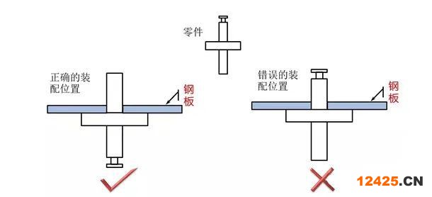 設(shè)計人員率先發(fā)言:“這個零件的上下部分直徑一致,員工不留心就容易裝反,所以可以讓有’槽’的一邊直徑大于鋼板孔徑,就能避免操作出錯。”