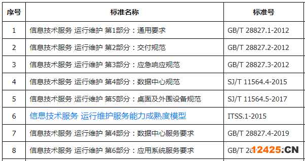 目前ITSS運維服務(wù)頒布實施的標(biāo)準(zhǔn)有以下幾項: