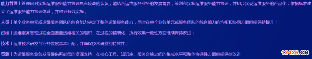 是指企業(yè)依據(jù)成熟度模型的標(biāo)準(zhǔn)實施了較為系統(tǒng)的運維服務(wù)能力管理,并形成較為完善的人員、過程、技術(shù)和資源方面的管理制度,且得到有效實施。