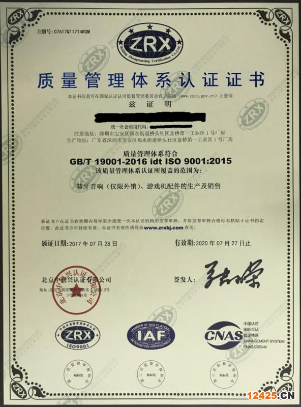 iso9000質(zhì)量認(rèn)證證書(shū)