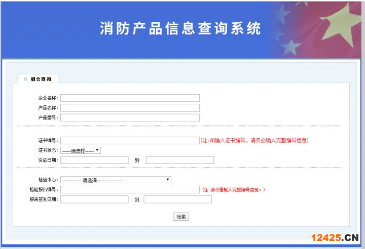 登陸消防產(chǎn)品信息查詢系統(tǒng),可以通過企業(yè)名稱、產(chǎn)品名稱、產(chǎn)品型號、證書編號任意一項進行查詢。