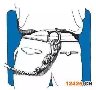 4、系好左腿帶或扣索,系好右腿帶或扣索。