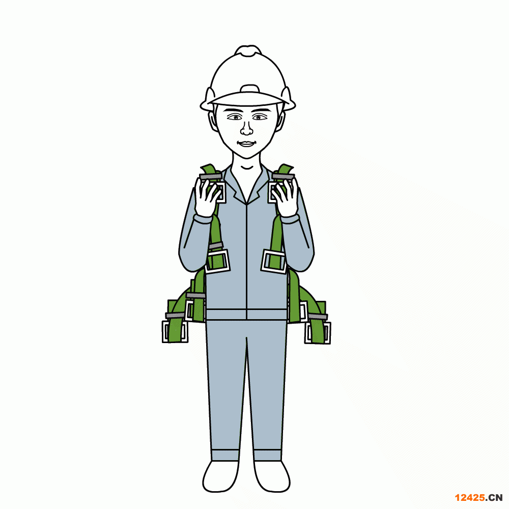 6、調(diào)節(jié)腿帶直到合適,調(diào)節(jié)肩帶到合適。