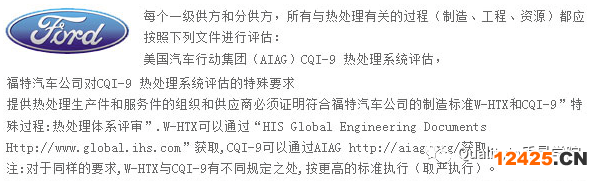 美國戴姆勒克萊斯勒、福特、通用三大汽車公司在其顧客特殊要求中均對熱處理系統(tǒng)評審提出要求,凡是熱處理供應(yīng)商都必須按CQI-9做過程審核。