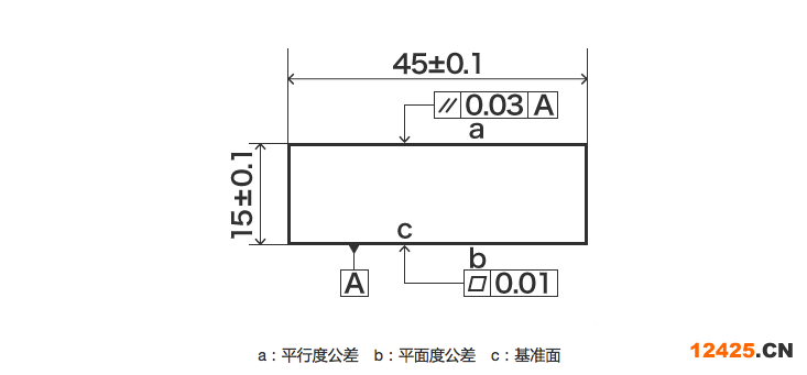 指定“表面凸凹度”,標(biāo)示應(yīng)該呈現(xiàn)何等正確的平坦面。最凸起部分與最凹陷部分必須位于上下分離2個(gè)平面之間夾住的一定距離。