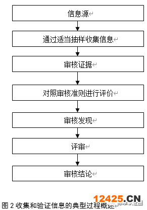 審核活動的實施主要包括為向?qū)Ш陀^察員分配角色和職責(zé)、舉行首次會議、審核中的溝通、審核信息的可獲得性和訪問、實施審核時的成文信息評審、收集和驗證信息、形成審核發(fā)現(xiàn)、確定審核結(jié)論、舉行末次會議。審核信息的可獲得性和訪問是本次修訂的新增內(nèi)容。由于對虛擬位置/場所的審核日益普遍,在何處、何時以及如何訪問審核信息是選擇審核方法的重要決定因素。圖2概述了從收集信息到得出審核結(jié)論的典型過程。實施審核時的成文信息評審也屬于一種收集信息的方法,其他方法包括訪談、觀察等。通過對照審核準(zhǔn)則評價審核證據(jù)來形成審核發(fā)現(xiàn)。當(dāng)審核計劃有規(guī)定時,具體的審核發(fā)現(xiàn)應(yīng)包括符合事項和良好實踐以及相應(yīng)的支持證據(jù)、改進機會和對受審核方提出的任何建議。對審核發(fā)現(xiàn)的評審幫助形成審核結(jié)論。