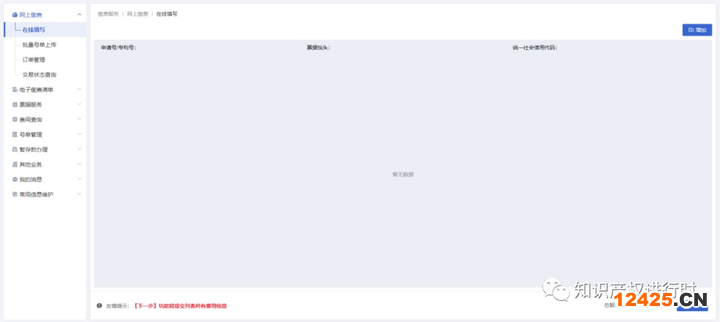 用戶進(jìn)入在線填寫界面,可以新增申請(qǐng)?zhí)?,查詢?yīng)繳費(fèi)用。