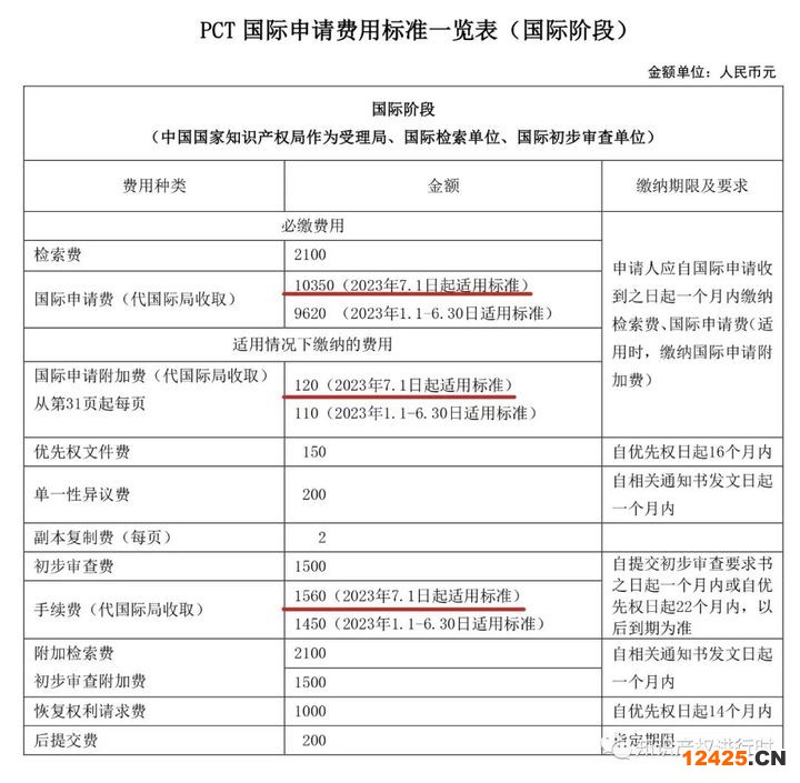 PCT國(guó)際申請(qǐng)費(fèi)用標(biāo)準(zhǔn)一覽表(國(guó)際階段)