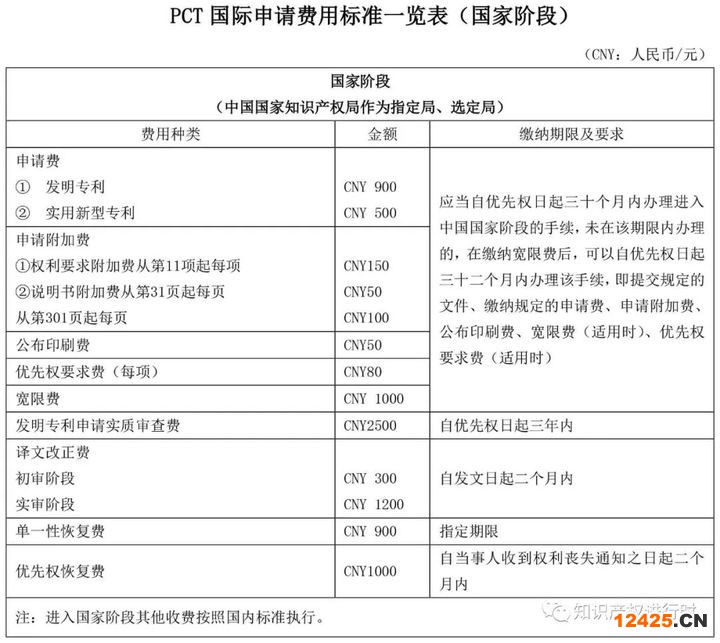 PCT國(guó)際申請(qǐng)費(fèi)用標(biāo)準(zhǔn)一覽表(國(guó)家階段)