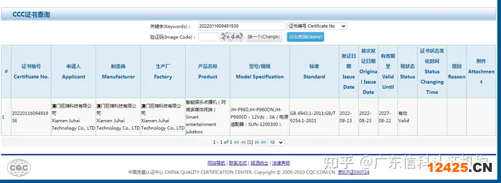 我選擇我們幫客戶申請的一個最近發(fā)證的證書,輸入證書編號查詢,結果如下: