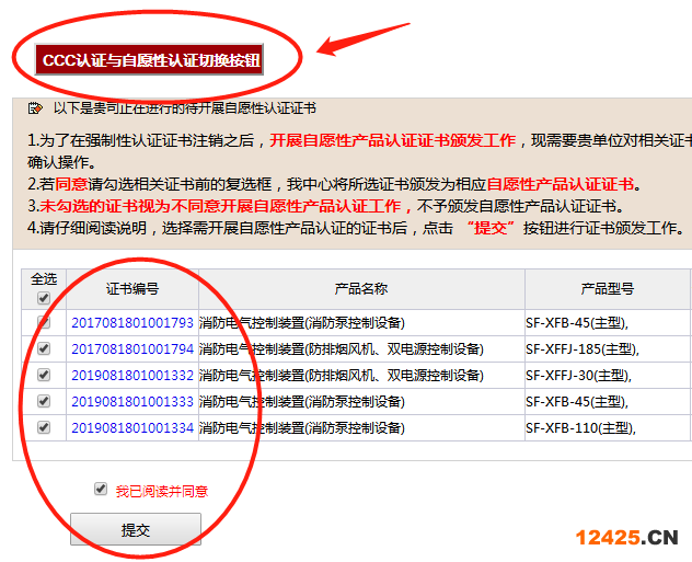 第二步 點(diǎn)切換:CCC認(rèn)證與自愿性認(rèn)證切換按鈕