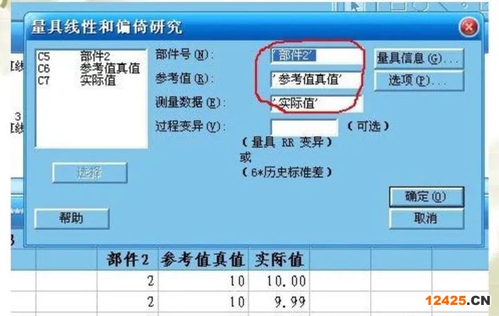 1、準備樣件(g≥5.并包括量具的整個工作范圍); 2、管理者對每個樣件進行測量并給出參考值; 3、由操作者測量每個樣件10次以上; 4、輸入數(shù)據(jù)并計算(利用Minitab)。