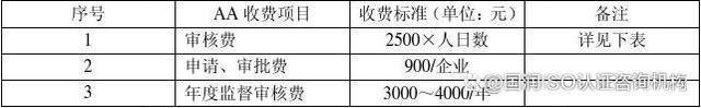 3.2.2 AA審核收費標(biāo)準(zhǔn)